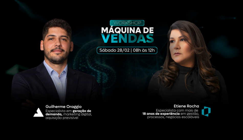 O workshop será conduzido por Etiene Rocha, especialista em gestão, processos e vendas, com mais de 18 anos de experiência na organização de operações comerciais e desenvolvimento de negócios escaláveis, e por Guilherme Oraggio, especialista em geração de demanda, marketing digital e aquisição previsível.